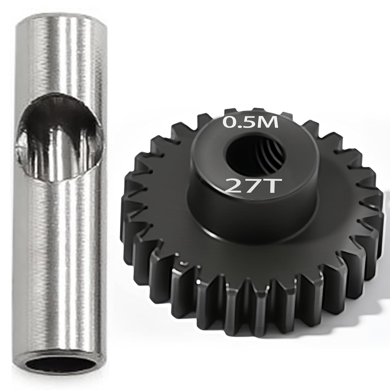 0.5M Pinion Gear 27T Hardened Steel 3.175mm Bore with 2.3mm Adapter, Precision Motor Gear