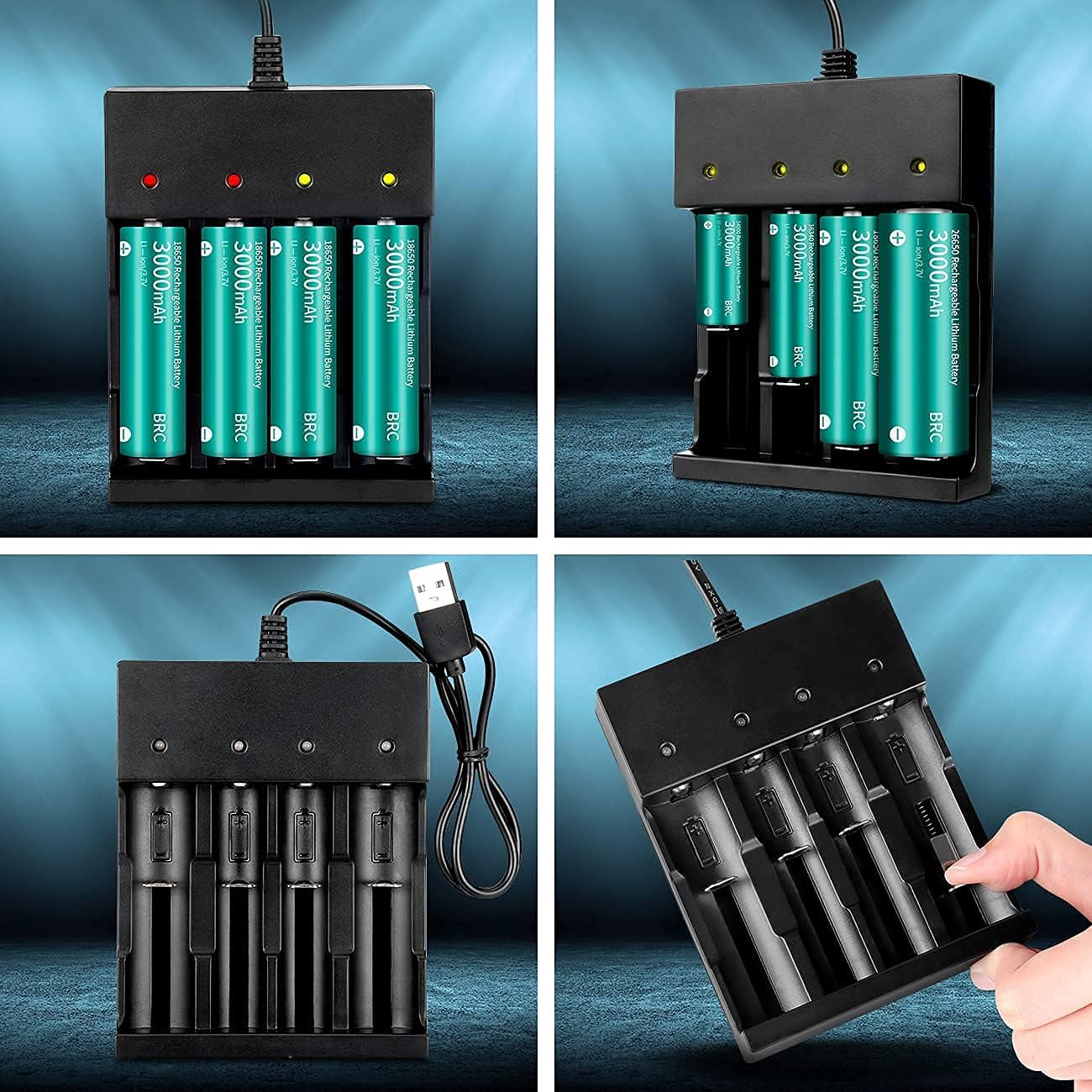 18650 USB Charger 3.7V Rechargeable 18650 Battery Charger 4 Bay Li-ion for Rechargeable Lithium Batteries 26650 21700 18650 10400 14500 16340 16650 18500