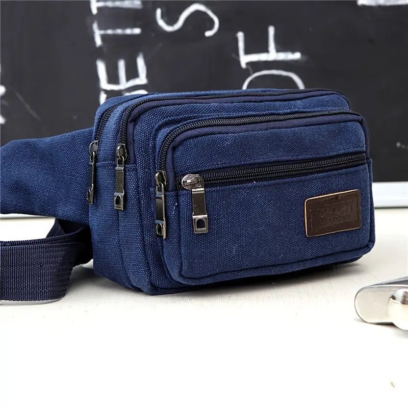 1pc Retro Men’s Canvas Fanny Pack, Outdoor Sports Multifunctional Men’s Waist Bag, Durable Large Capacity Bag, Portable Mobile Phone Purse(Deep Blue)
