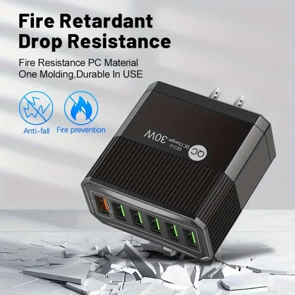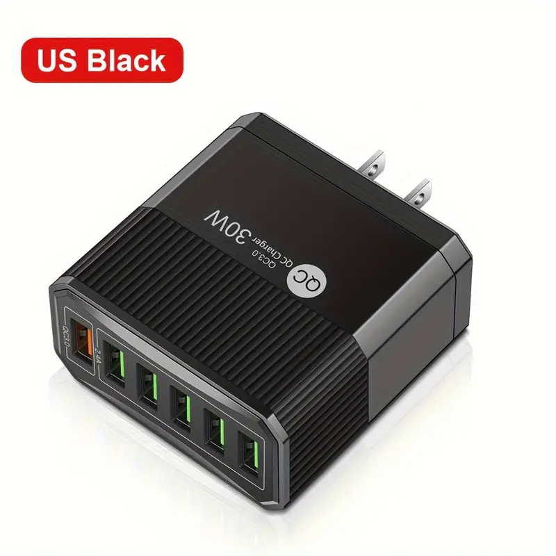 30W 6 Ports USB Charger Fast Charging Quick Charge 3.0 Power Adapter Wall Charger Mobile Phone Adapter For IPhone For Samsung