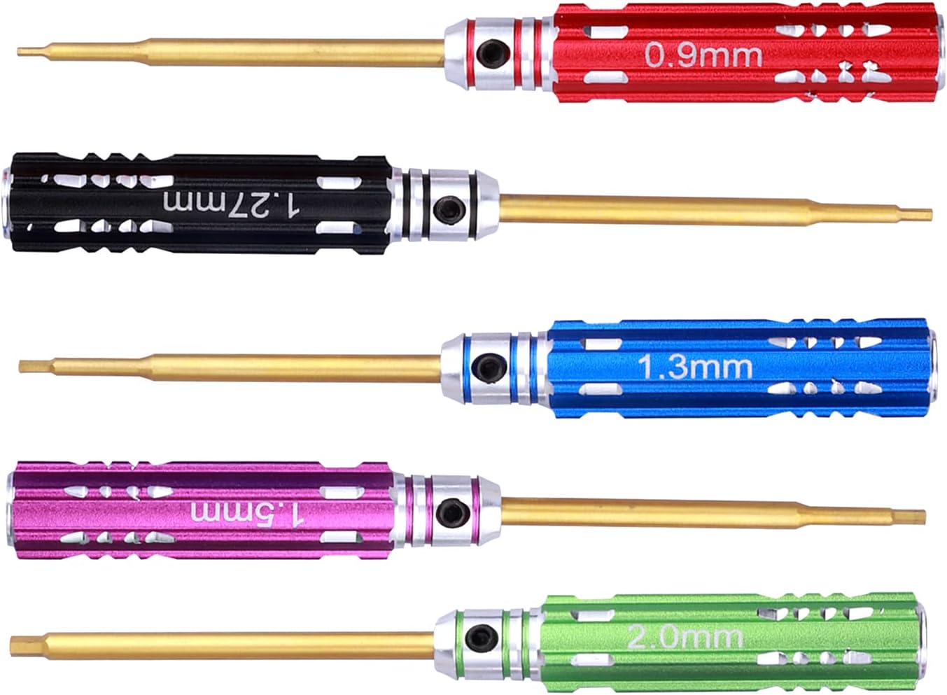 5pcs FriHobby Small RC Hex Screwdriver Set for Axial SCX24 Repair Tool Kits 0.9mm 1.27mm 1.3mm 1.5mm 2.0mm Mini Hex Driver Set Titanium Bit Tips