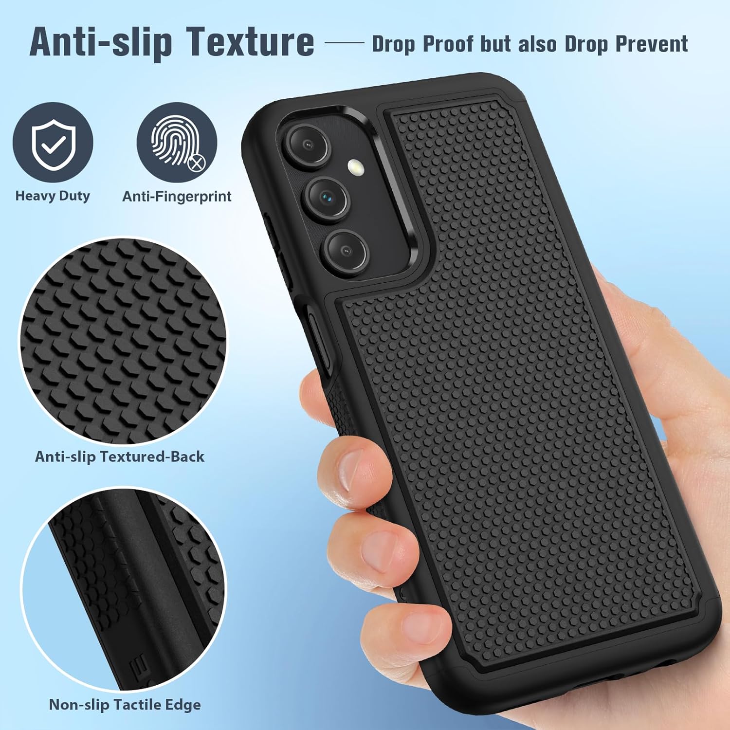 for Samsung Galaxy A15-5G Case: Dual Layer Protective Heavy Duty Cell Phone Cover Shockproof Rugged with Non Slip Textured Back – Military Protection Bumper Tough – 2024, 6.5inch