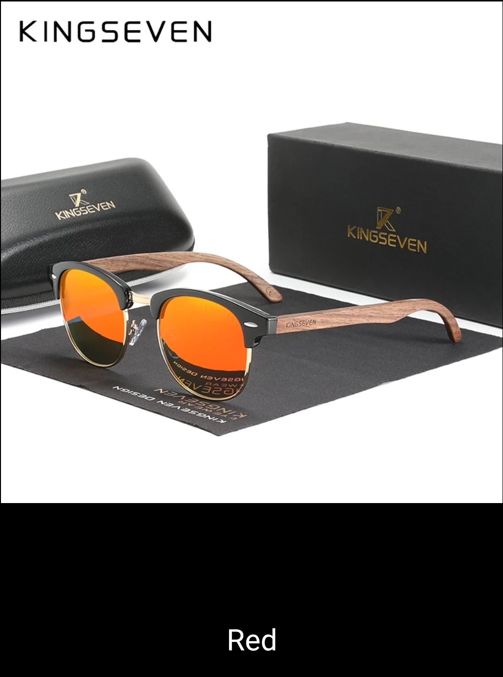 KINGSEVEN Handmade Black Walnut Wooden Sunglasses Women or Men Polarized UV400 Protection Semi-Rimless Retro Eyewear Red..