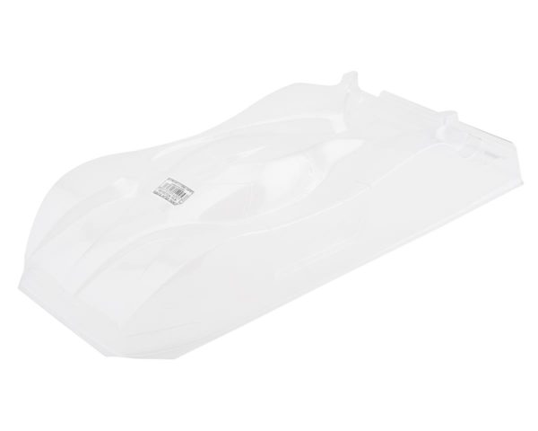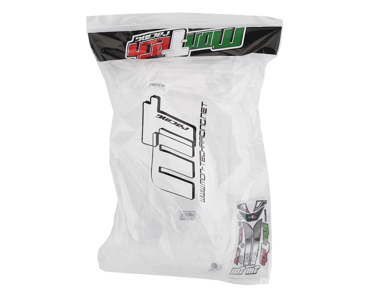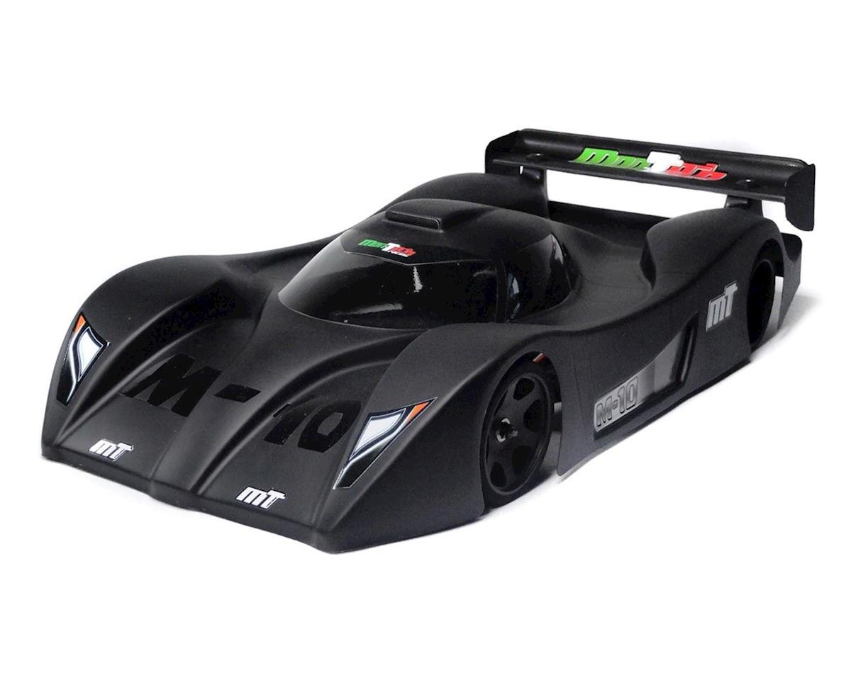 Mon-Tech M-10 1/10 190mm Pan Car Carpet Body. This body is made from high-quality polycarbonate and is manufactured using a unique molding process that makes it very light weight and durable. Body includes window masks and rear wing mounting hardware.