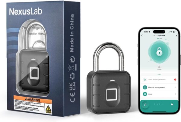 NexusLab Smart Fingerprint Padlock, Locker Lock, Gym Lock with TUYA App Control, IP67 Waterproof, 10 Fingerprints, Stainless Steel Shackle for School Locker, Fence, Gym Locker & Outdoor Gates
