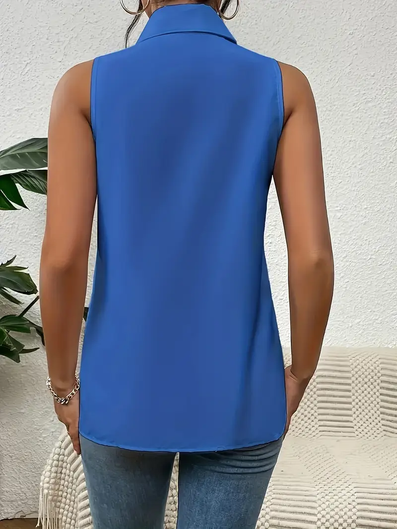 Plus Size Button Front Collared Blouse, Casual Sleeveless Blouse