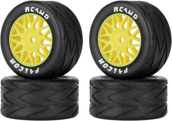 RCAWD for Losi 1/12 RC Racecar On-Road Car Pre-Glued Wheel Tire Set, Balance Grip & Durability Nylon Rubber 8mm Hex Adapter 4mm Tires Upgrades Parts All Terrain Adaptation 4pcs Yellow