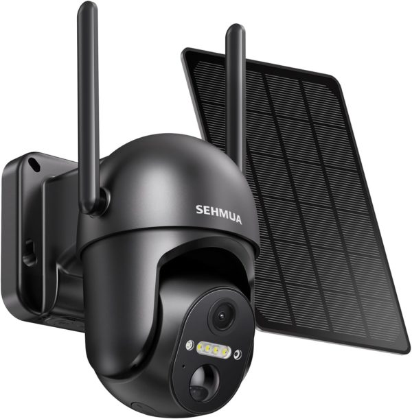 SEHMUA Solar Security Cameras Wireless Outdoor, 2K 360° View Battery Powered Outdoor Camera, WiFi Home Security with Spotlight Color Night Vision, PIR Sensor