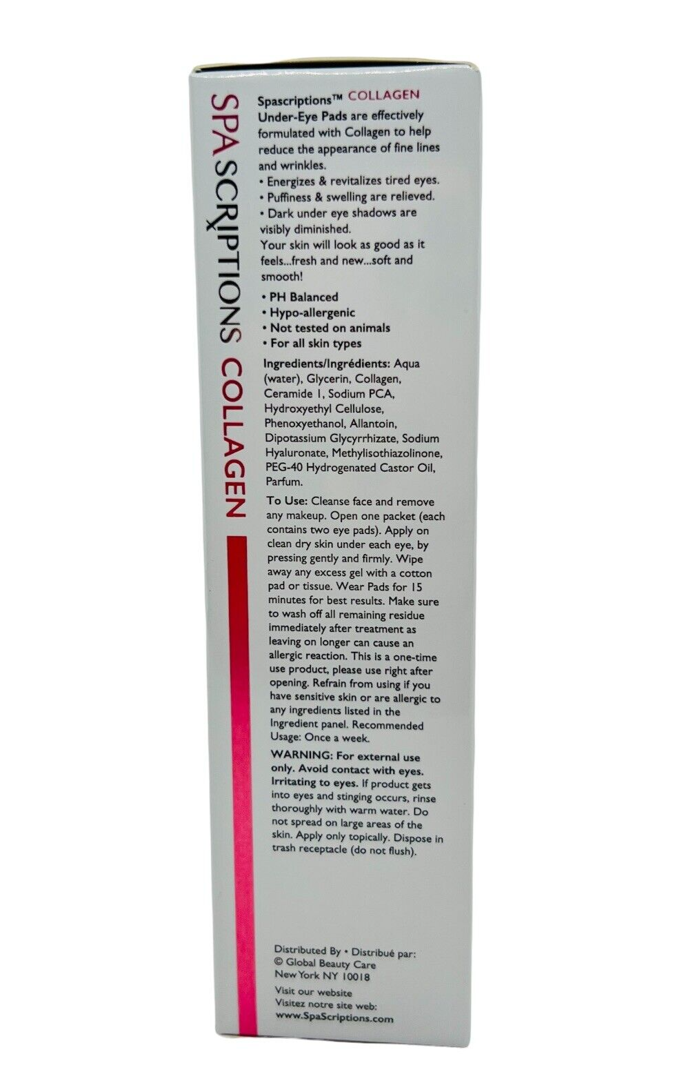 SPA Scriptions Collagen Under Eye Pads 5 pairs Anti-Wrinkle Soothing Skin Care.