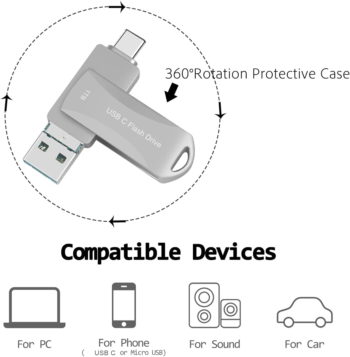 USB Drive 1TB for Phone with USB-C, 1000GB,High-Speed