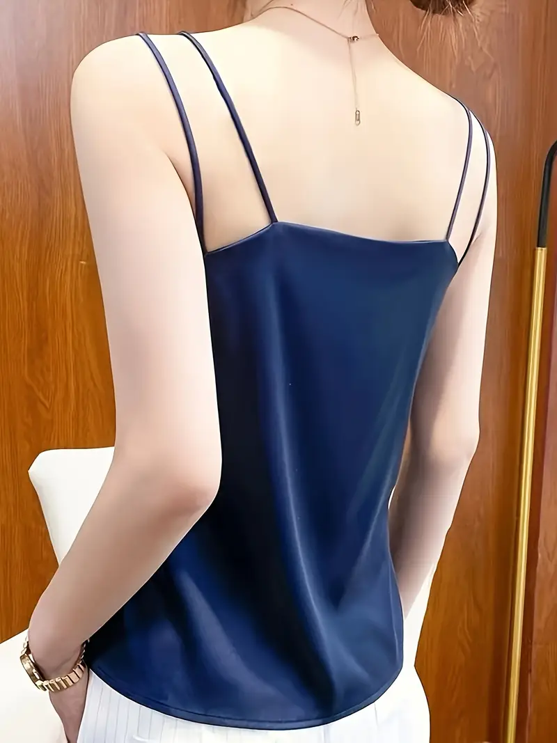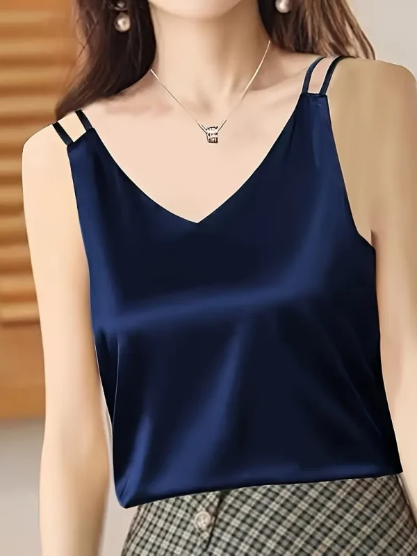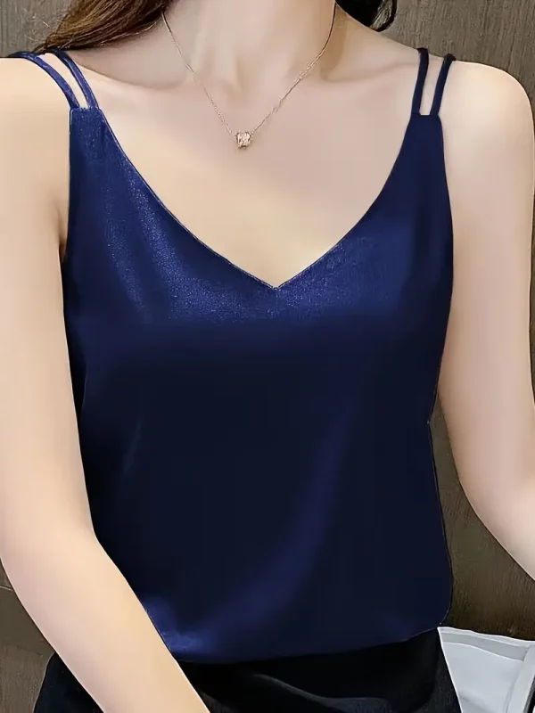 V Neck Double Straps Top, Elegant Solid Color Sleeveless Top