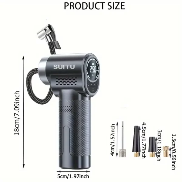 Wireless Handheld Air Compressor – 150PSI Portable Tire Inflator with Digital Display and LED Lighting for Cars, Motorcycles, Bicycles, and Sports Balls